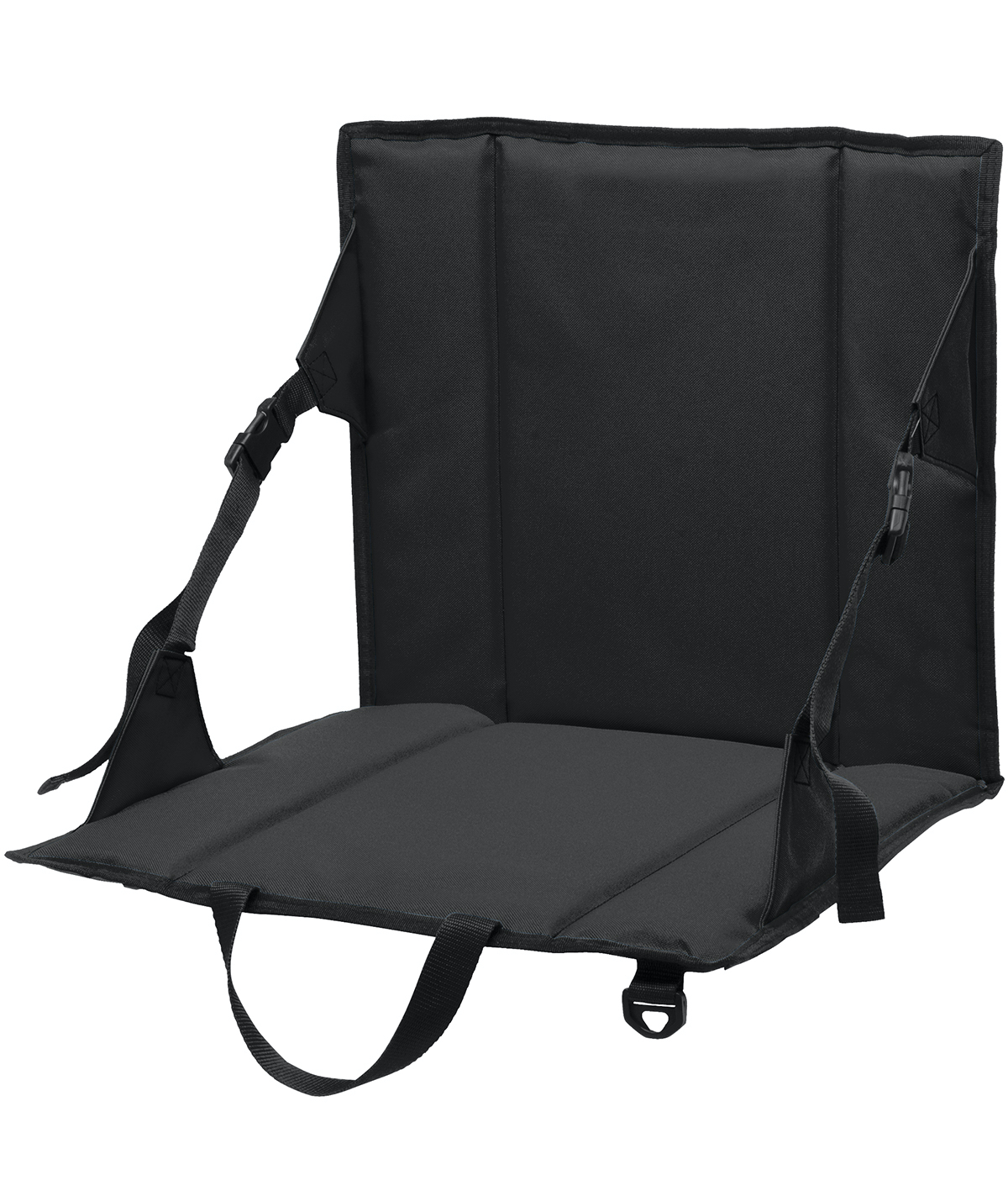 Cheer on the team and securely carry essentials. This portable padded seat adjusts for comfort and has a zippered pocket.